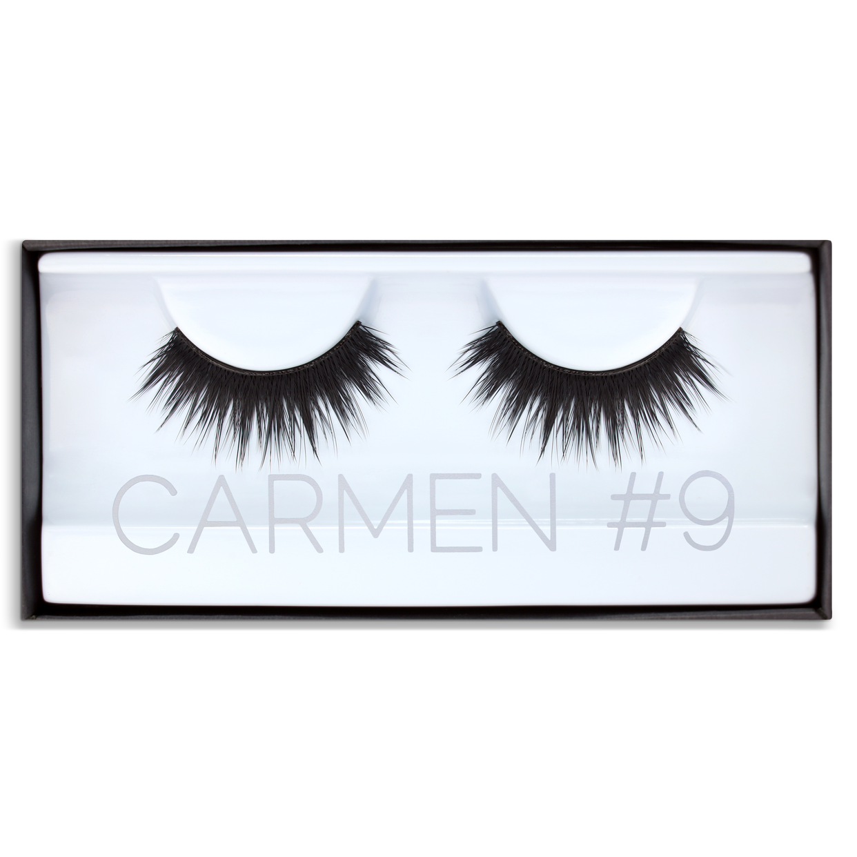CARMEN #9: Densely packed onto the band, those lashes provide a phenomenal root volume while the ends are graduated for a fabulously fluttery and feminine effect. Ultra dramatic style for serious lash lovers looking for extra volume and length without the weight.