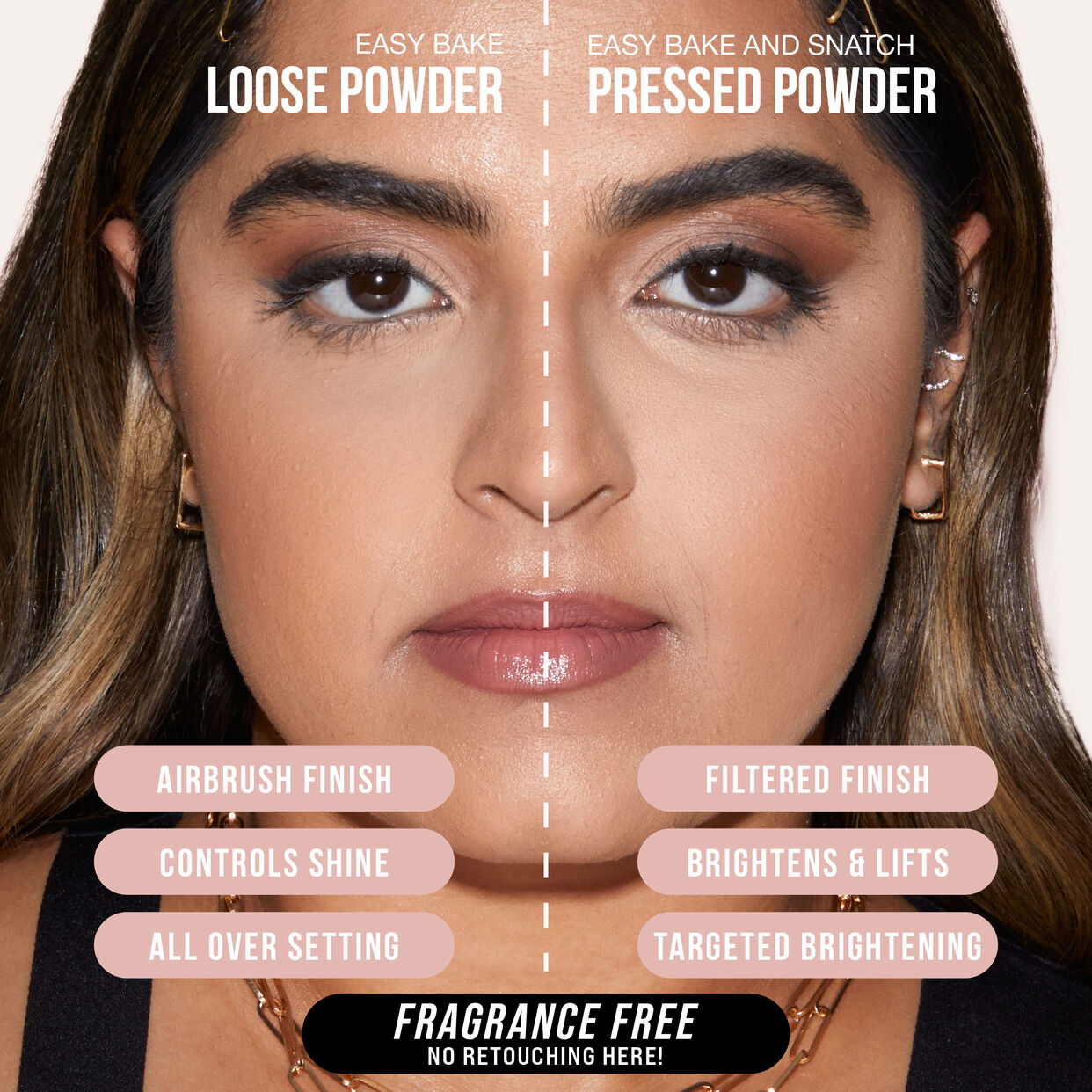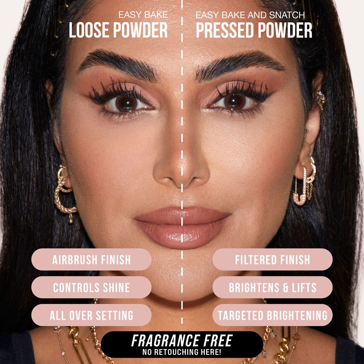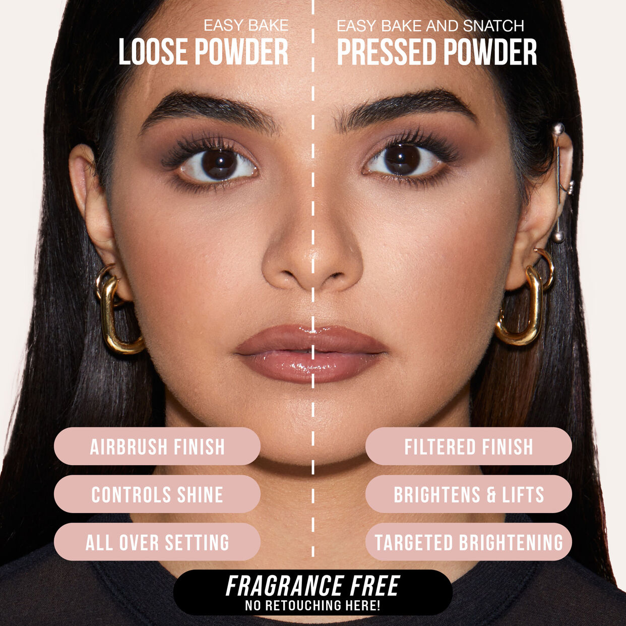 A dusting of Easy Bake leaves a translucent veil on the skin creating a matte finish that controls shine, color corrects, and highlights the different contours of the face without creasing or fading - the ultimate step to an airbrushed finish.