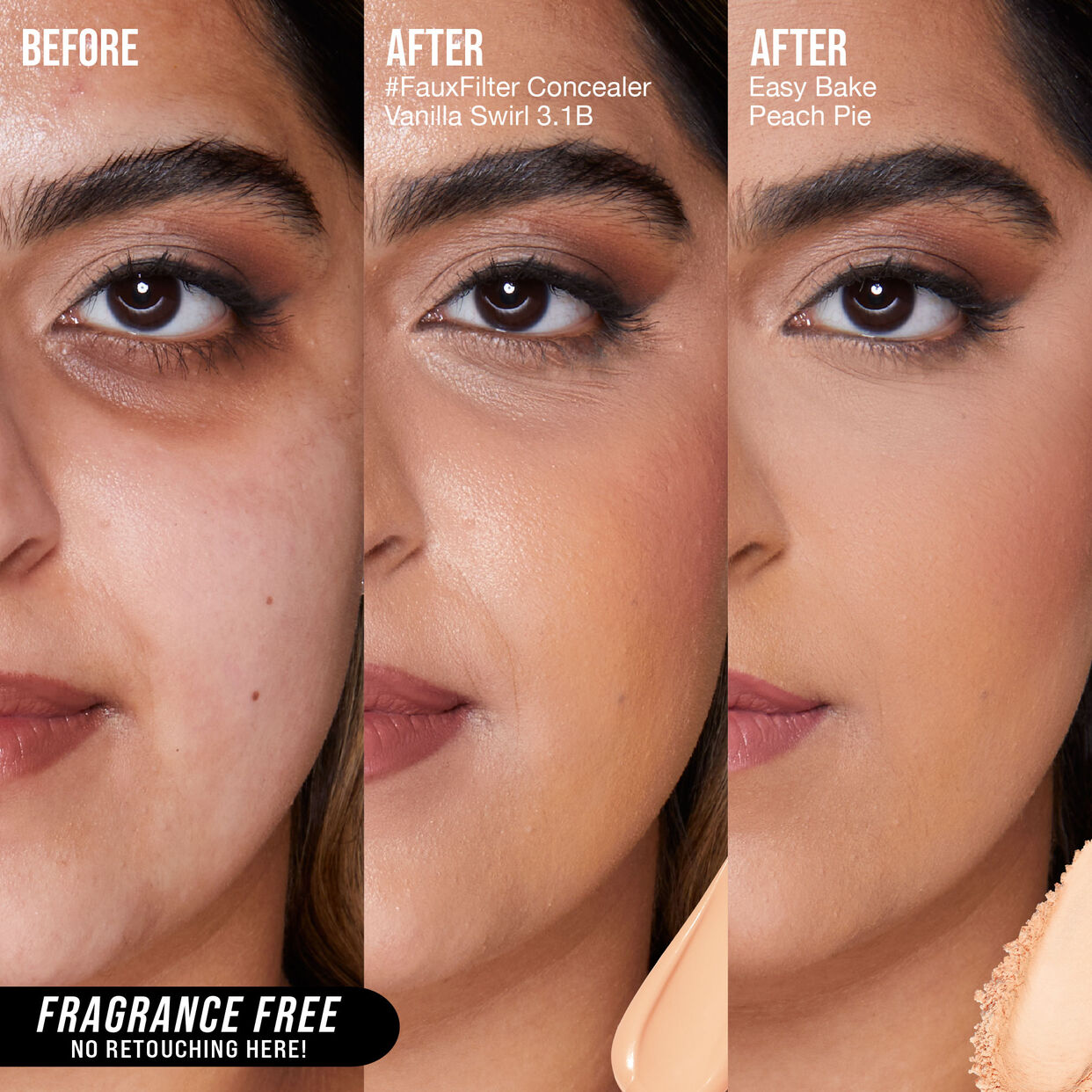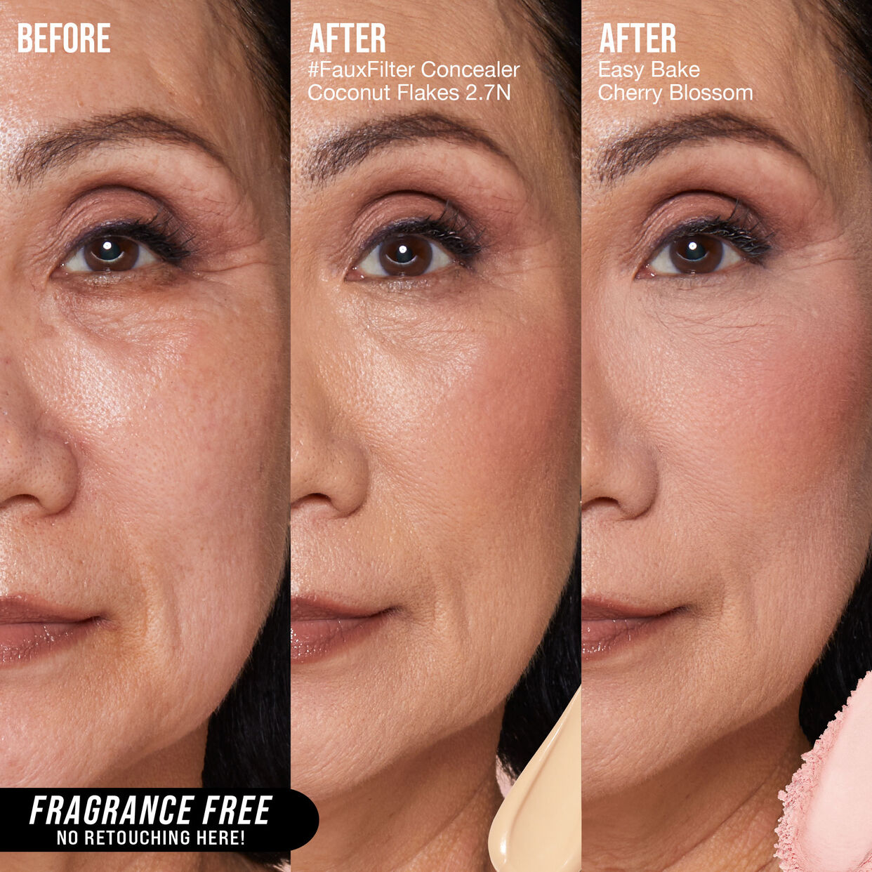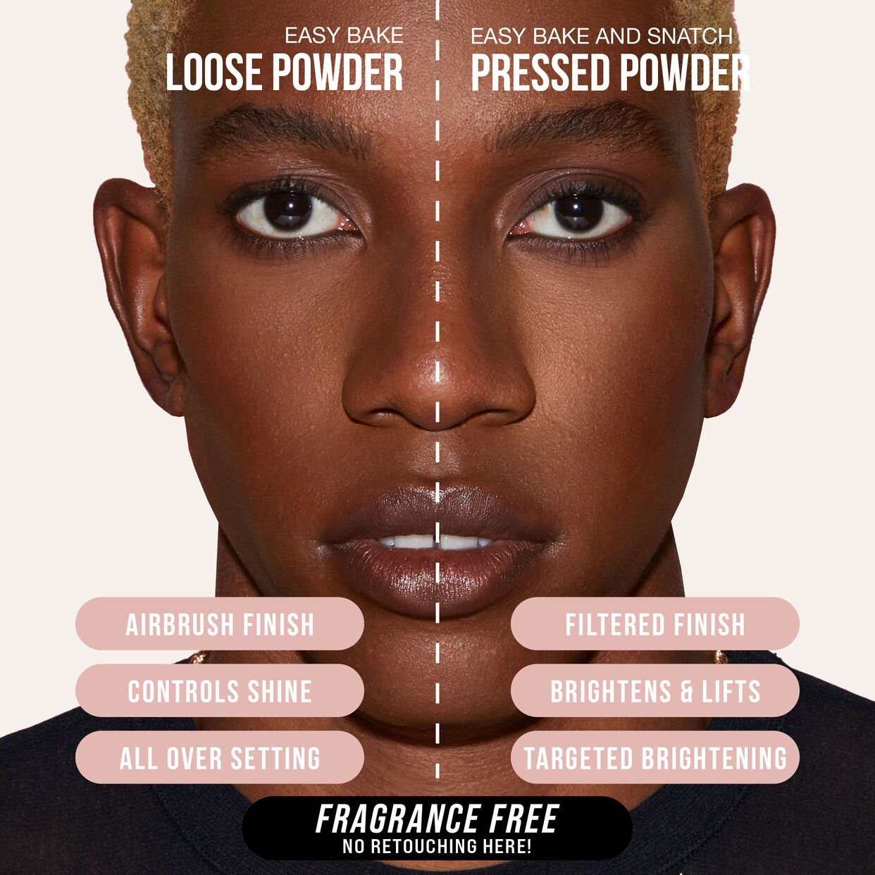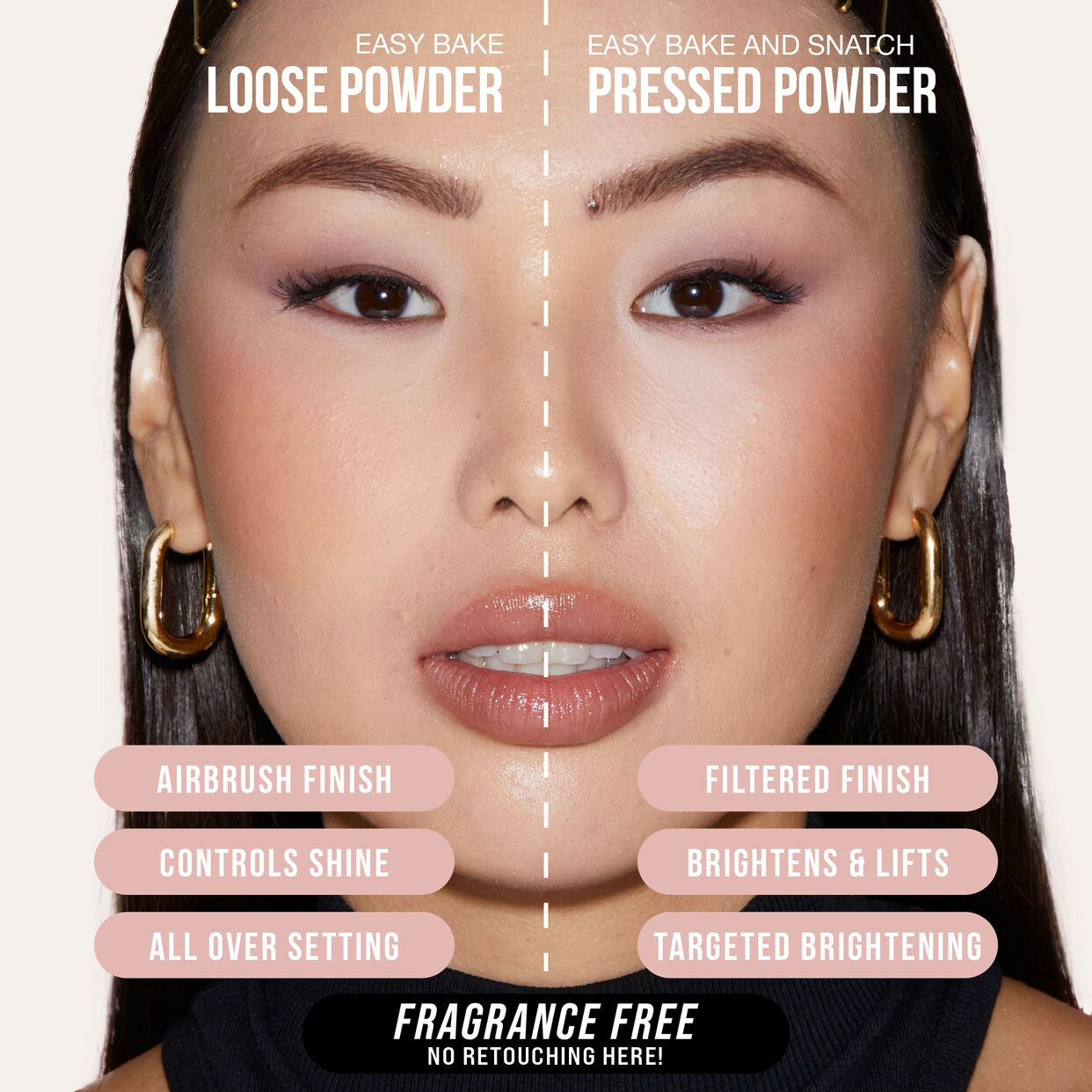 A dusting of Easy Bake leaves a translucent veil on the skin creating a matte finish that controls shine, color corrects, and highlights the different contours of the face without creasing or fading - the ultimate step to an airbrushed finish.