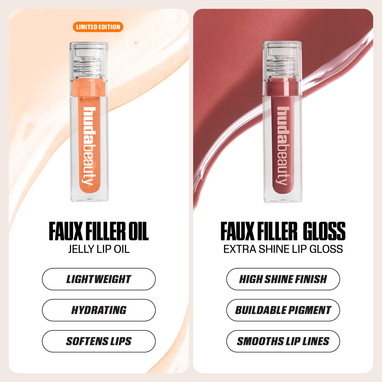 A limited-edition HUDA BEAUTY x SAINT LEVANT Kalamantina Lip Oil! Your favorite Faux Filler Jelly Oil - now with a juicy orange scent for instantly soft, super hydrated, ultra-shine lips.