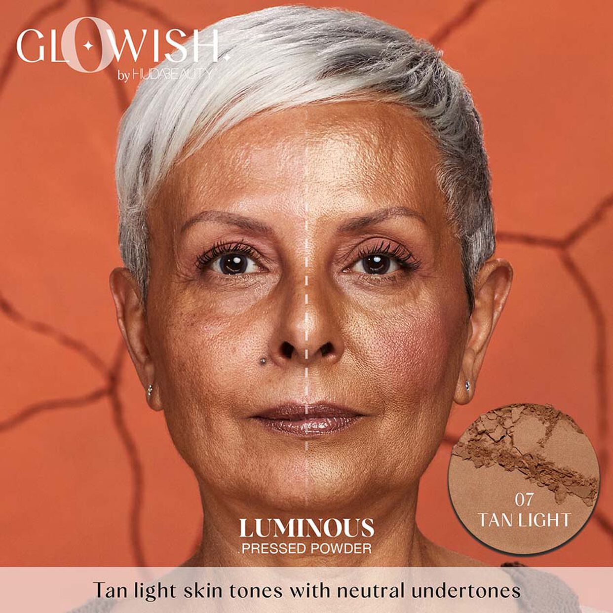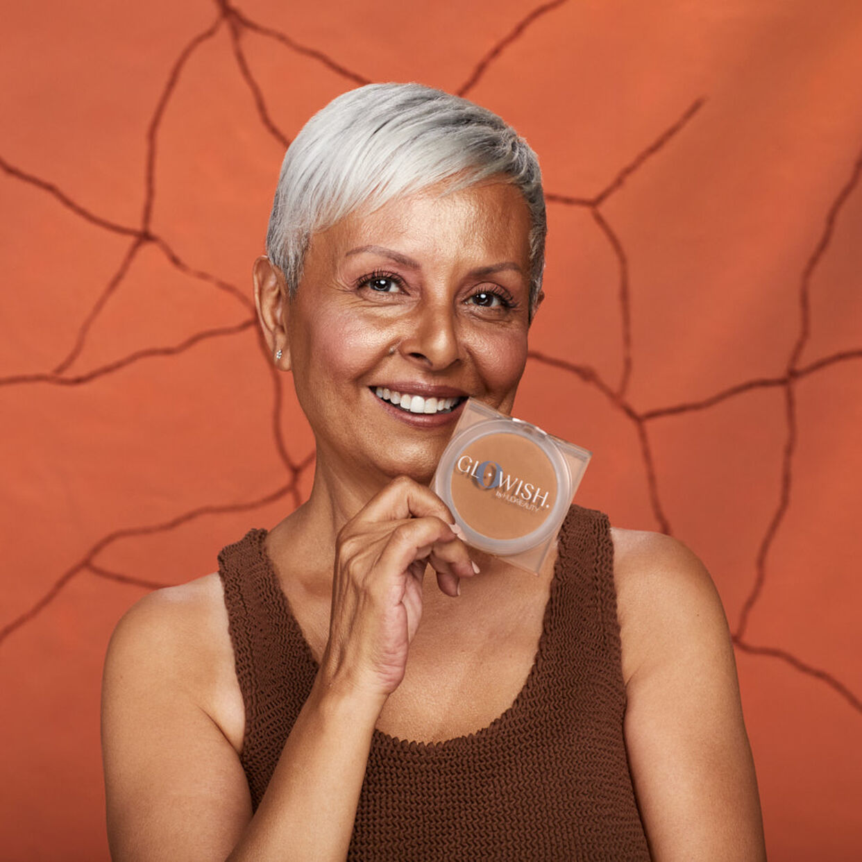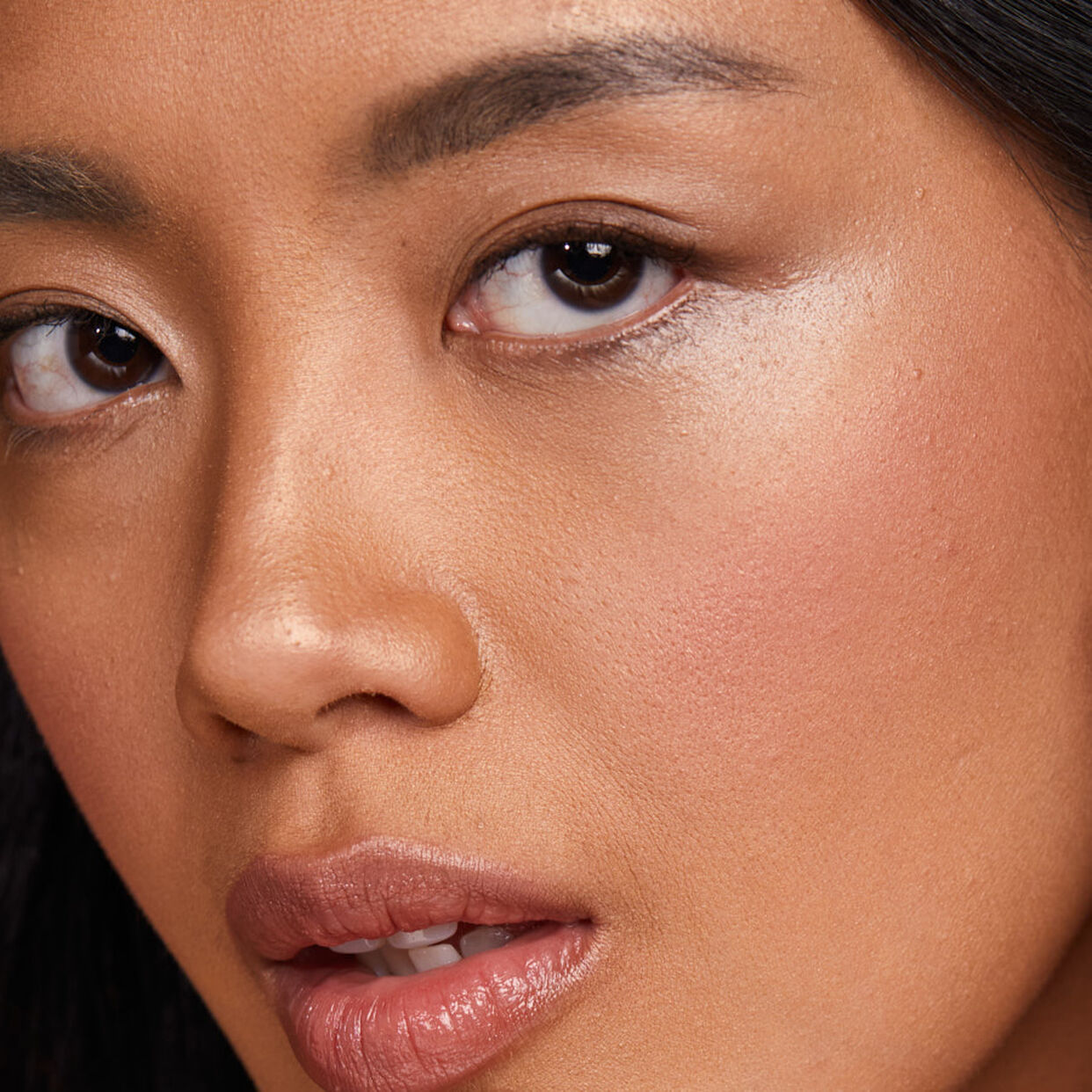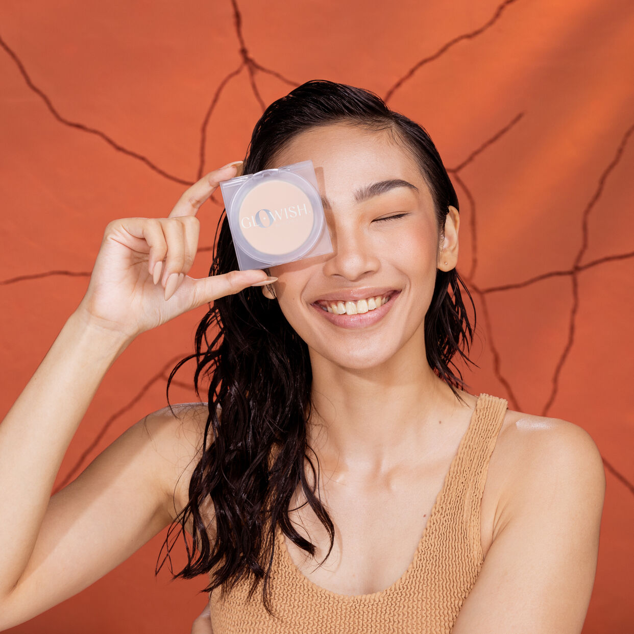 Dimensional Radiance: After application of our GloWish Multidew Skin Tint, set with the powder to add extra dimension.