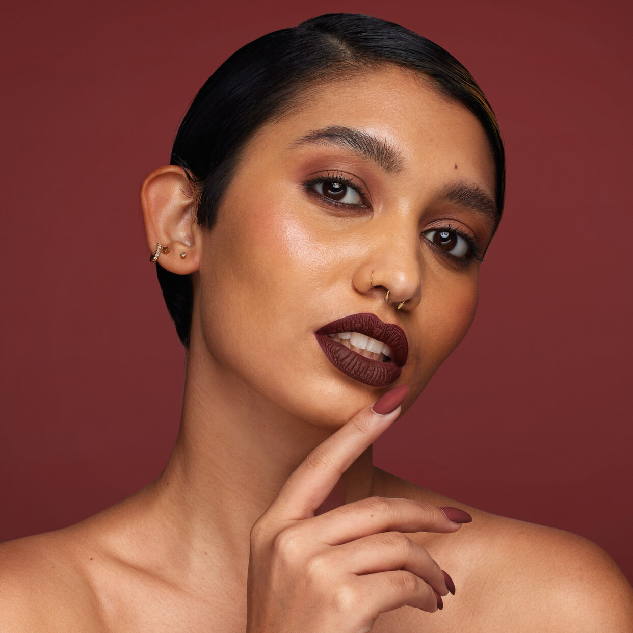 Step 2. Apply a thin layer of Liquid Matte in a corresponding or lighter shade to fill in.