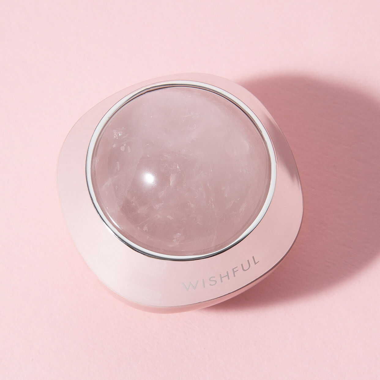 1. Place roller in the palm of your hand with rose quartz facing up.