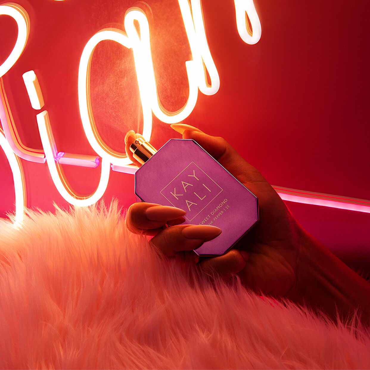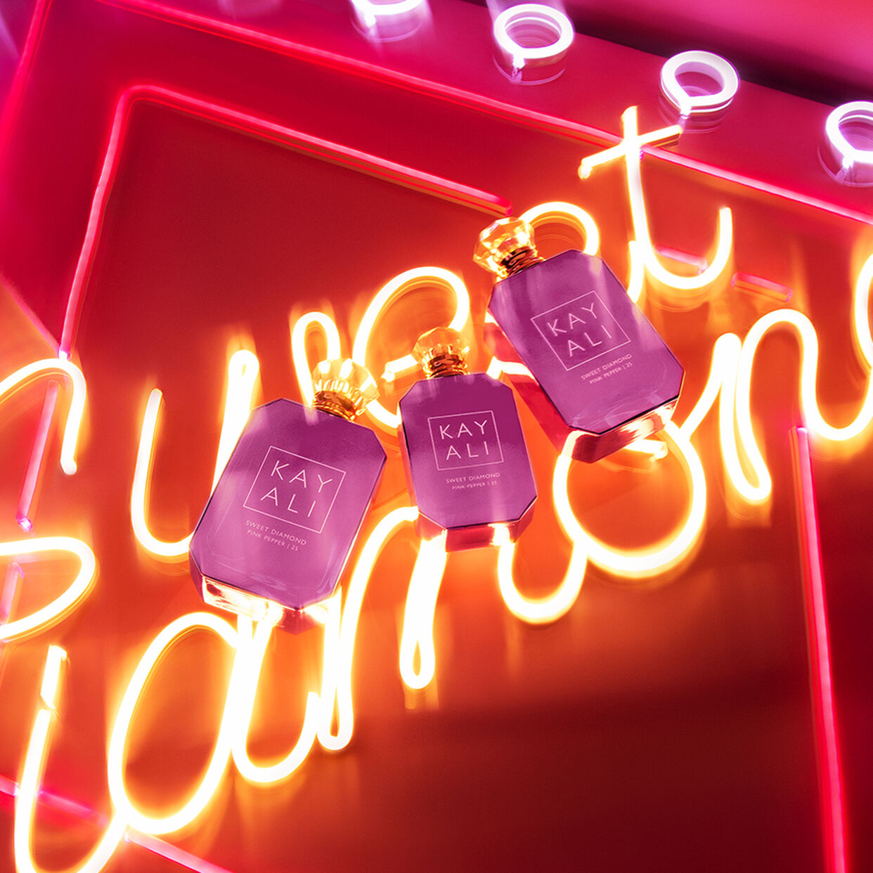 Sweet Diamond Pink Pepper | 25 is an electric, floral, woody creation. With its luxurious, modern metallic finish the unique bottle epitomizes the vibrant and flirtatious juice inside. The scent of Sweet Diamond Pink Pepper | 25 combines the spiciness of pink pepper and saffron with sweet Bulgarian Rose and Royal Lily florals for a perfect balance. Deepened with Sandalwood and Golden Amber and intriguingly heightened with sparkling bergamot, this scent is perfect for those who expect a little more from the unexpected. The number 25 indicates the 25 rounds of formula modifications that went into creating the perfect balance of flirtatious and sweet.