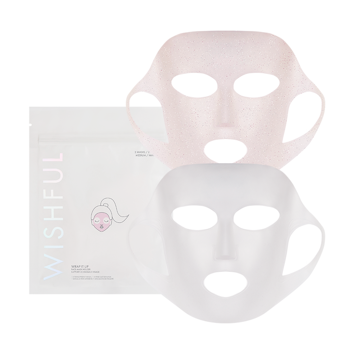 • Medium size includes 1 transparent mask and 1 pink glittery mask
